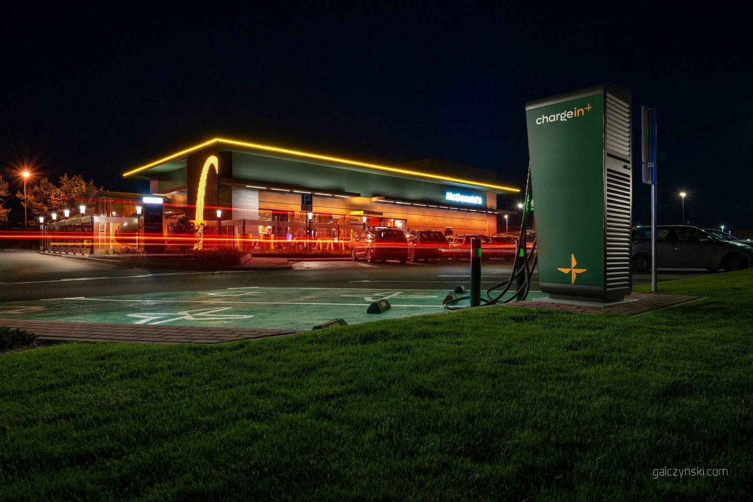 W 2024 miałem przyjemność realizować zlecenie polegające na wykonaniu zdjęć sieci punktów ładowania firmy Charge In. Moim zadaniem było wykonanie zdjęć miejsc, w których zainstalowano ładowarki. Urządzenia o różnych parametrach były zlokalizowane w różnorodnych miejscach – od biurowców w centrum Warszawy do małych punktów ładowania w firmach zlokalizowanych w odległych lokalizacjach. Spora część punktów była montowana przy restauracjach McDonalds, w tym w pilotażowej stacji w Konstancinie-Jeziornej.